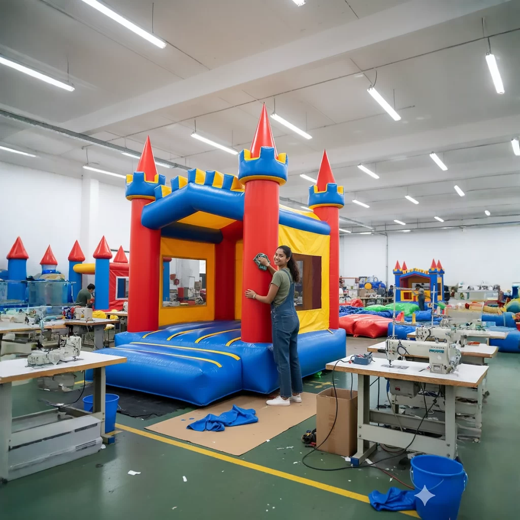 Al comprar en una fábrica de inflables, tienes la seguridad de que cada producto se fabrica con materiales certificados, costuras reforzadas y procesos de control de calidad. No son productos almacenados durante meses o reacondicionados, sino inflables nuevos, hechos especialmente para ti.